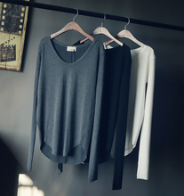 显瘦露锁骨大U领磨毛打底衫女长袖春秋打底衫女2016新款百搭潮T恤