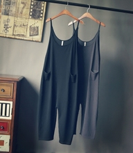 冰丝针织哈伦背带裤女黑色针织哈伦裤七分裤连体裤