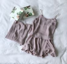 质感超赞仿真丝夏季睡衣女套装韩版宽松吊带+短裤居家服女2套包邮