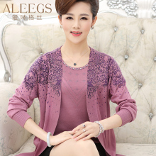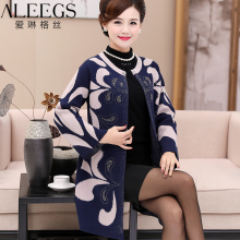 2017中老年女装春秋装新款长袖针织开衫妈妈装中长款宽松毛衣外套