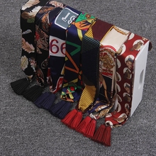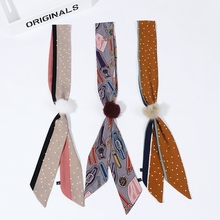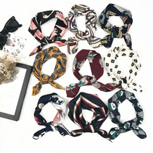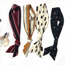 韩国春秋新款复古印花包边领巾雪纺小丝巾头巾围巾蝴蝶结领结女