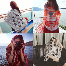 2016年欧美范夏季清新大丝巾防晒披肩沙滩巾骷髅头围巾女春秋