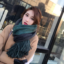 围巾女冬季韩版学生长款加厚仿羊绒墨绿色双面百搭围脖女冬天韩国