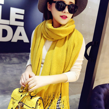 韩版秋冬季毛线围巾女冬天纯色针织围巾披肩两用长款加厚韩国围脖