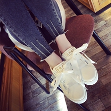 2017春夏韩版新款丝带小白鞋女漆皮系带休闲单鞋舒适百搭学生板鞋