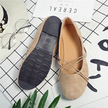 新款豆豆鞋松紧带女鞋圆头平底浅口奶奶鞋女交叉绑带单鞋芭蕾舞鞋