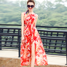2017夏季新款女装欧美印花显瘦长裙无袖气质度假海滩大摆连衣裙