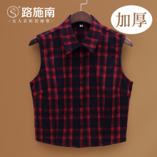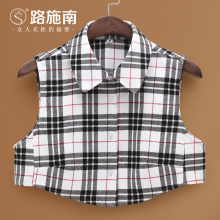秋冬新款韩版假领子女百搭加厚纯棉格子大圆领马甲衬衫衣领假领子
