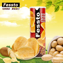 马来西亚进口零食菲思图烧烤味洋芋薯片160g罐装 办公休闲膨化
