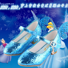 新款春秋女童小高跟皮鞋公主蝴蝶结演出鞋韩版儿童亮片水晶单鞋潮