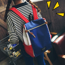 尼龙布撞色双肩包女韩版潮学院风帆布书包学生大容量百搭旅行背包