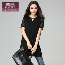 祺薇儿2016夏新款中长款韩版宽松显瘦大码女装胖mm短袖t恤女上衣