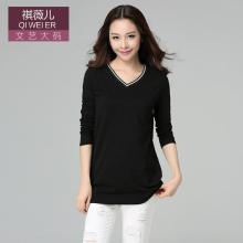 祺薇儿春装新款韩版大码女装V领打底修身显瘦百搭打底衫棉长袖T恤
