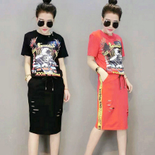 特超大码女装200斤胖MM显瘦短袖套装 加肥胖妹妹加大号夏装连衣裙