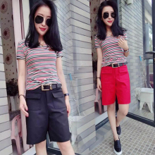 胖mm夏装韩版雪纺短袖套装大码女装2017新款胖妹妹宽松显瘦短裤子