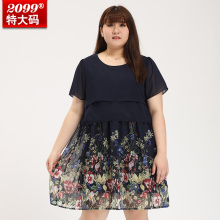 2099加大码女装 2016夏装层叠显瘦雪纺印花裙加肥加大修身连衣裙