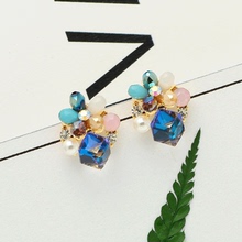 花朵耳钉女气质韩国水晶饰品925纯银耳环长款防过敏耳饰2016新款