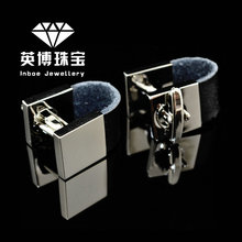 新款 英博 Cufflinks 黑色皮革链式袖扣袖钉男士法式衬衫袖口钮