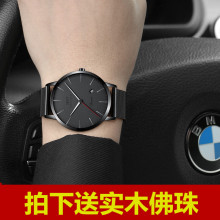 手表男皮带防水夜光男表超薄 时尚潮流真皮石英表学生男士手表