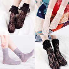 日系甜美袜子女无痕蕾丝堆堆袜韩国镂空纱网袜中筒丝袜薄百搭袜子