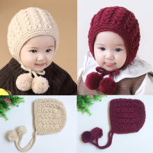 T840韩国荷叶边宝宝毛线系带宫廷帽婴儿手工帽宝宝护耳帽公主帽