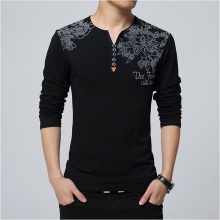 春天男装T恤男长袖V领棉质上衣t恤韩版男士加大码打底衫青年衣服