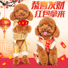 狗狗唐装宠物小狗四脚衣服秋冬加厚新年服装泰迪比熊博美过年棉衣