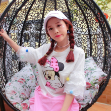 日系少女软妹公主甜美可爱小清新卡通印花蕾丝花边白色t恤女夏季