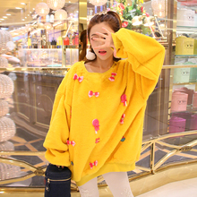 2016冬季新款仿皮草蝴蝶结宽松卫衣