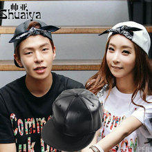 hiphop帽子女士蝴蝶结系带男韩版皮帽时尚平沿嘻哈帽情侣帽棒球帽