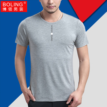 2017夏季新款圆领短袖T恤衫男中青年纯色韩版休闲半袖打底男士t恤