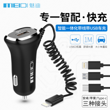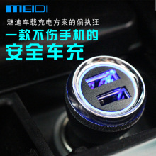 魅迪车载充电器车充一拖二带USB苹果安卓手机充电头汽车用点烟器