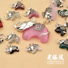 S925纯泰银镶钻小大象石榴红粉白猫眼紫水晶玉髓项手链吊坠挂饰$C