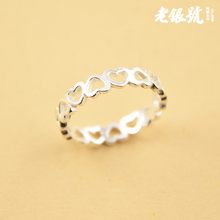 S925纯银镂空爱心戒指对戒情侣款纯银指环尾戒老银号饰品批R01发C