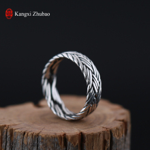 GW 康熙珠宝 新款包邮s925纯银泰银复古时尚编织纹闭口戒指男女款