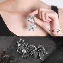 GW 43康熙珠宝 s990纯银复古时尚原创手工镂空掐丝小金鱼吊坠女款