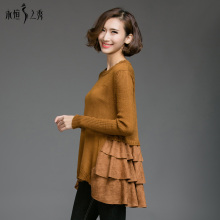 永恒之秀2016加大码女装冬季新款胖MM显瘦荷叶边圆领打底衫毛衣女