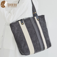 DHH日系韩国帆布包包女包撞色手提单肩包文艺百搭大容量学生书包