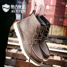 奥古仕盾复古男士工装靴英伦马丁靴高帮疯马皮大头鞋男靴牛皮军靴