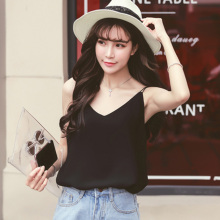2017春夏新品热销款V领纯色简约宽松显瘦双层雪纺吊带背心 包邮