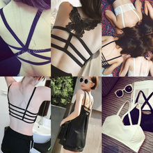 2017春装舒适后四条带美背无钢圈性感吊带镂空抹胸小背心 有胸垫