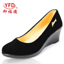 老北京布鞋春季酒店服务员工作女鞋黑色职业中跟坡跟舒适软底单鞋