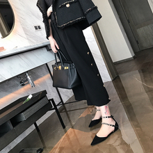 mimius2017春季新款黑色九分裤百搭纯色阔腿裤女M6695