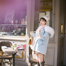 mimius冬季新款仿真毛外套宽松中长款休闲风棉衣女M6377