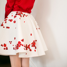 mimius2017春季新款甜美印花气质伞裙宽松白色半身裙女M6668