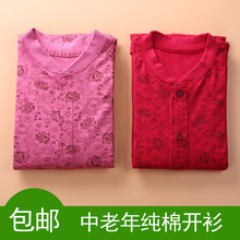 女士纯棉开衫秋衣中老年开口棉毛衫老人大码妈妈对襟开身衣线衣