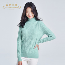 春竹2016秋冬新款高翻领扭花韩版简约修身羊绒套衫 保暖毛衣 女装