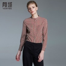 颜域品牌女装2017春装新款通勤OL宽松桑蚕丝立领高端长袖真丝衬衫