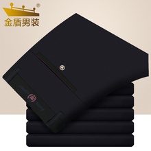 金盾男装2017新品男春季裤子弹力商务休闲裤男黑色修身直筒长裤潮