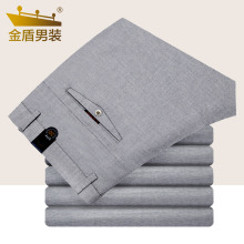 金盾男装夏季薄款男士休闲裤 修身裤子青中年爸爸装父亲男裤